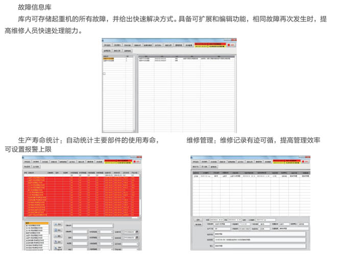 AGF系列起重機械安全監(jiān)控管理系統(tǒng)是我公司自主開發(fā)研制的產(chǎn)品,按照國質(zhì)檢特聯(lián)【2011】137號文件的要求,嚴格執(zhí)行國標:GB/T 28264-2017生產(chǎn),廣泛用于各行業(yè)大型起重設備機械、提升機、架橋機、港機、工程機械等,系統(tǒng)是為各種起重機的運行監(jiān)視、診斷分析、設備預警與檢修維護而搭建的信息系統(tǒng)管理平臺。系統(tǒng)實時記錄起重機的運行參數(shù)、操作記錄,當滿足故障條件和設置預警值時,系統(tǒng)及時提醒和記錄各種事件信息,為起重機的操作人員和維護人員提供實時的、詳盡的歷史數(shù)據(jù)和分析報表。起重機安全監(jiān)控管理系統(tǒng)具有可靠穩(wěn)定性、靈活交互性、便捷易用性,是集實時監(jiān)控﹑故障報警﹑數(shù)據(jù)登錄﹑設備維護﹑運行統(tǒng)計于一體的現(xiàn)代起重機綜合信息管理平臺。